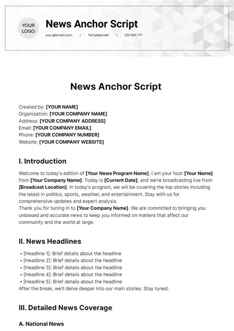So, what exactly is a news anchor script? Think of it as the roadmap for your broadcast. It’s the written text that guides the anchor through the news stories, transitions, and any other elements of the show. It’s way more than just reading words off a page; it’s about storytelling, engaging the audience, and presenting information clearly and concisely. The news anchor script is the backbone of any news program, and mastering it is crucial for success in the field. This script includes various elements: the intro, the body of the news stories, transitions, and the outro.