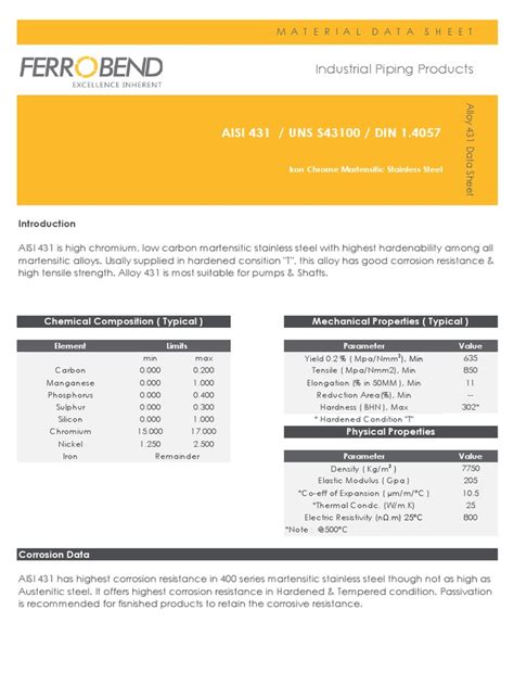 Hey guys! Ever wondered about the nitty-gritty details of different metal alloys? Today, we’re diving deep into a real workhorse in the stainless steel family: AISI 431 stainless steel . You might have heard of it, or maybe you’re seeing it specified for a project and want to know what the big deal is. Well, buckle up, because we’re going to break down everything you need to know about this versatile material, from its chemical makeup to where it shines brightest. We’ll explore why engineers and manufacturers pick AISI 431 for their critical applications and what makes it stand out from the crowd. Get ready to become an AISI 431 pro!