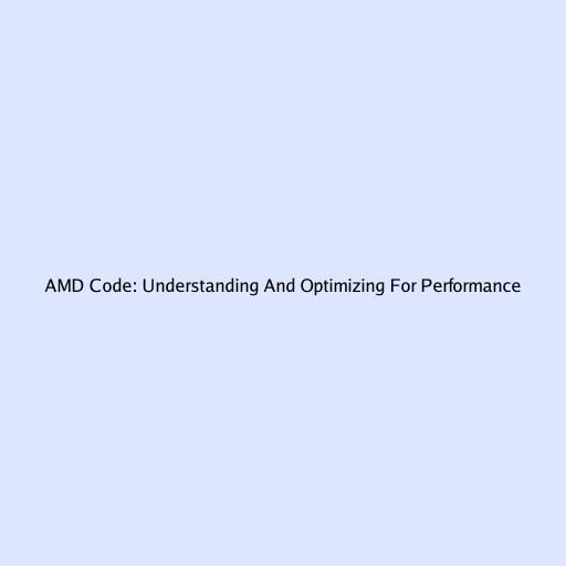 AMD Code: Understanding And Optimizing For Performance
