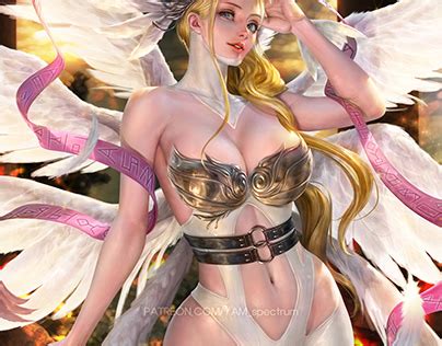 • Angewomon’s design is based on angels, particularly archangels. Her appearance is a symbol of hope and divine power.