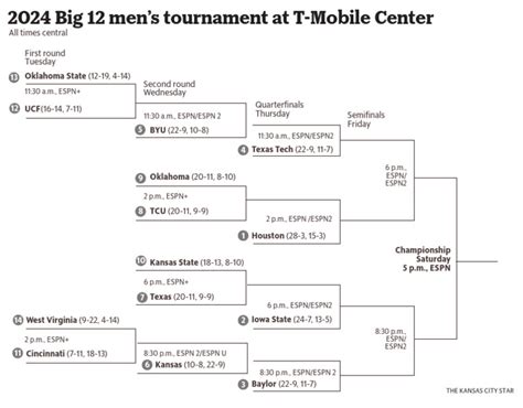• Head-to-Head Results and Tie-Breakers: While less about NCAA Tournament selection and more about Big 12 Tournament seeding , head-to-head results against tied opponents can sometimes play a role in how a team is viewed. The Big 12 has specific tie-breaking procedures for seeding, and understanding these can help predict exact matchups within the bracket.