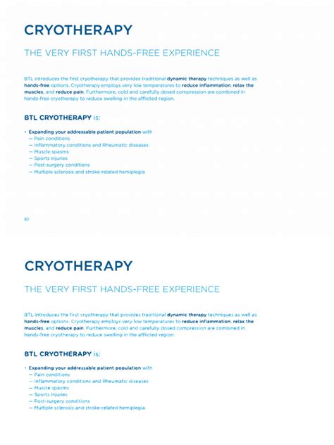 As mentioned earlier, the cost per session typically falls within the \(750 to \) 1,500 range. This price usually includes the application of the BTL Cryo device to the targeted area, as well as the professional’s time and expertise. Some clinics may also include additional services, such as pre-treatment preparation or post-treatment care, in the cost per session. Be sure to clarify what is included in the price to avoid any surprises later on. It’s also worth asking about any potential discounts or promotions that may be available. Some clinics offer special pricing for new clients or package deals for multiple sessions. By doing your research and asking the right questions, you can potentially save money on your BTL cryotherapy treatments.