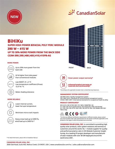 Finally, let’s wrap things up by talking about the warranty information you’ll find associated with the Canadian Solar 410W datasheet . This is arguably one of the most important sections for any homeowner or business owner making the switch to solar. It’s your guarantee that the manufacturer stands behind their product and will compensate you if something goes wrong. Canadian Solar, being a major player in the solar industry, typically offers robust warranties. You’ll usually see two main types of warranties: the Product Warranty (also known as the Workmanship Warranty) and the Performance Warranty . The Product Warranty covers defects in materials and workmanship. This means if there’s an issue with how the panel was manufactured – maybe a faulty junction box, a cracked frame, or delamination – this warranty has you covered. For Canadian Solar, the Product Warranty is often quite generous, typically lasting 10 to 25 years from the date of purchase. This is a strong indicator of their confidence in the quality of their manufacturing process. The Performance Warranty , on the other hand, guarantees the power output of the panel over time. Solar panels naturally degrade slightly over their lifespan, losing a small percentage of their output each year. The performance warranty sets a minimum guaranteed output level. A common guarantee for a 25-year performance warranty on a 410W panel might look something like this: guaranteeing at least 90% of the nominal power (410W) after 10 years, and at least 85% (or sometimes even 80%) of the nominal power after 25 years. It’s crucial to check the exact percentages and timelines on the specific warranty document, as these can vary slightly. Guys, a solid warranty like this provides incredible peace of mind . It means that your investment in solar power is protected for decades. When you’re looking at the Canadian Solar 410W datasheet and its accompanying warranty, you’re not just buying panels; you’re investing in a long-term, reliable energy solution. Always make sure you understand the terms and conditions, and keep your documentation safe. It’s your safety net for one of the most significant investments you’ll make for your home or business.