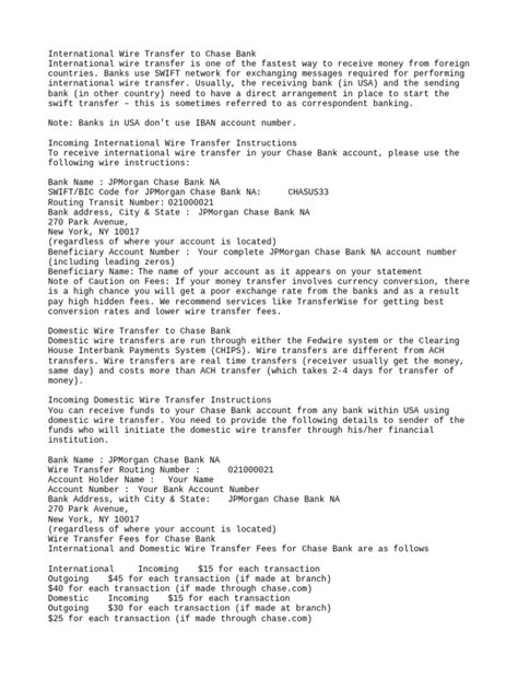 For International Wire Transfers: International wire transfers often require a different set of information, and sometimes a different routing number or SWIFT code. For international wires sent from Chase, the SWIFT code is generally CHASUS33 . For international wires received by Chase, the routing number 021000021 is commonly used. But again, for international wires, the SWIFT code is usually the primary identifier that directs the funds to the US and then to Chase. You’ll also need the recipient’s full name, address, account number, and the bank’s name and address. Crucially , if you are receiving an international wire, the sender’s bank will have specific instructions, and you should provide them with the most accurate Chase routing number for incoming wires, which is often 021000021 , along with the SWIFT code CHASUS33 . Always, always, always double-check this information with both the sender and Chase Bank directly. Misinformation here can lead to significant delays and potential fees.