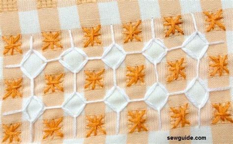 • Create a diamond shape using straight stitches on four adjacent gingham squares.