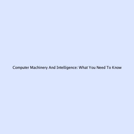 Computer Machinery And Intelligence: What You Need To Know