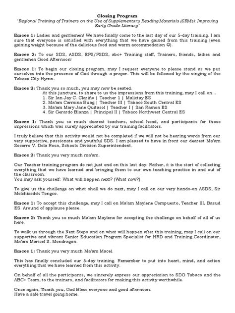 By following these tips, you can deliver a closing that is not only informative and engaging but also memorable and impactful. Remember, your closing is the last impression you make on your audience, so make it count!