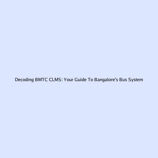 Decoding BMTC CLMS: Your Guide To Bangalore's Bus System