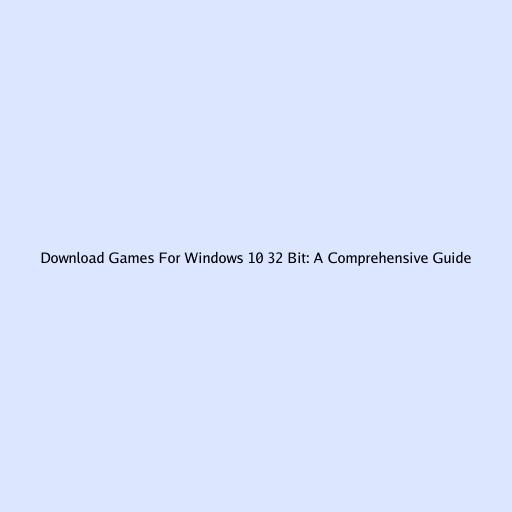 Download Games For Windows 10 32 Bit: A Comprehensive Guide