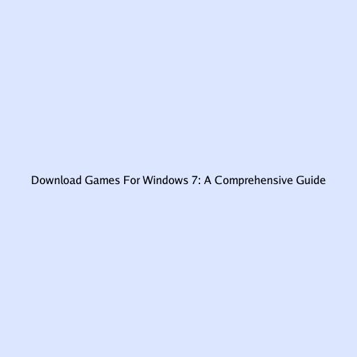 Download Games for Windows 7: A Comprehensive Guide
