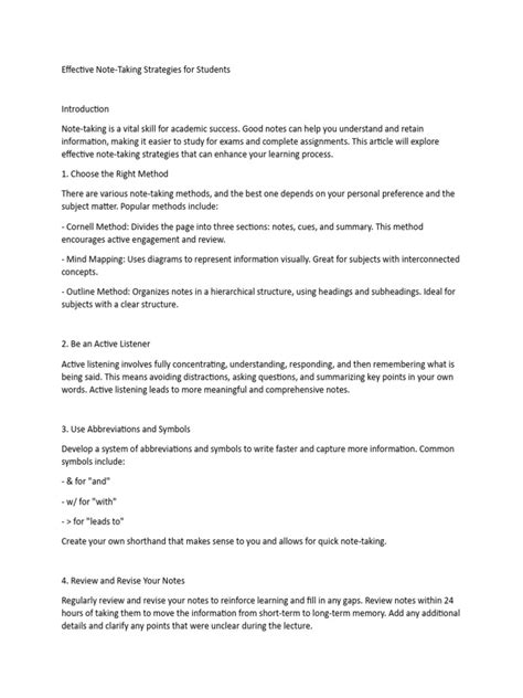 • Review Your Notes Regularly: The most important tip! Review your notes as soon as possible after the lecture or reading. This will help you reinforce the information and identify any gaps in your understanding.
