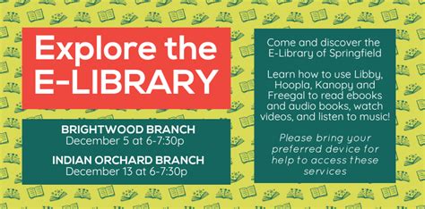 Going digital is huge, and the Springfield City Library is right there with it! They have an awesome digital library where you can find a ton of e-books and audiobooks. This is perfect for reading on the go, or if you just prefer the convenience of digital content. You can download books to your phone, tablet, or e-reader, and read or listen anytime, anywhere. Besides e-books and audiobooks, the digital library also offers access to streaming movies, music, and online databases. This gives you access to a huge variety of entertainment and information. This is available 24 7 , which is super convenient, and all you need is your library card. The online databases can be used for research, learning a new skill, or simply exploring a topic you’re interested in. The Springfield City Library ’s digital library is always expanding its collection, so you’ll always find something new to discover. The digital library also makes it easy to manage your account, reserve materials, and renew your loans online. This makes the whole library experience even more convenient. So, the next time you’re looking for something to read or watch, check out the Springfield City Library ’s digital library. You won’t be disappointed! This is an excellent way to access a vast collection of materials without even leaving your house.