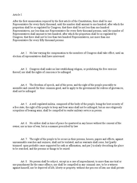Alright, let’s kick things off with what many consider the cornerstone of our freedoms: the Bill of Rights. These are the first ten amendments , ratified in 1791, and they lay out some pretty fundamental protections for individuals. When we talk about the full text of all amendments , these are where the story really begins. The First Amendment, for instance, is a biggie. It guarantees the freedom of religion, speech, the press, assembly, and the right to petition the government. Think about it: the ability to voice your opinions, to gather with others, to have a free press – these are all enshrined right here. It’s a powerful statement about individual liberty and the limits of governmental power. Then you have the Second Amendment, which addresses the right to keep and bear arms, a topic that continues to be debated fiercely today. Understanding its original intent and how it’s been interpreted over centuries is key to appreciating the ongoing discussions. The Third Amendment prevents the forced quartering of soldiers, something that was a major grievance during colonial times. It might seem a bit quaint now, but it was a significant protection against potential government overreach at the time. The Fourth Amendment is crucial for protecting us against unreasonable searches and seizures, requiring warrants to be judicially sanctioned and supported by probable cause. This is fundamental to our privacy and security. Moving on, the Fifth Amendment is packed with important rights: it includes the right to a grand jury indictment, protection against double jeopardy, protection against self-incrimination (you know, the right to remain silent!), and the guarantee of due process of law. It also ensures that private property cannot be taken for public use without just compensation, known as eminent domain. The Sixth Amendment focuses on the rights of the accused in criminal prosecutions, guaranteeing the right to a speedy and public trial, an impartial jury, the right to be informed of the charges, to confront witnesses, to compel favorable witnesses, and to have the assistance of counsel. This is all about ensuring a fair trial. The Seventh Amendment preserves the right to a jury trial in certain civil cases. The Eighth Amendment prohibits excessive bail and fines, as well as cruel and unusual punishments – another vital protection against governmental cruelty. The Ninth Amendment clarifies that the enumeration of specific rights in the Constitution does not mean that other rights that are not specifically listed are not also protected. This is a really important concept, acknowledging that our rights are broader than just what’s explicitly written down. Finally, the Tenth Amendment reinforces the principle of federalism, stating that any powers not specifically given to the federal government, nor withheld from the states, are reserved to those respective states, or the people at large. So, when we look at the full text of all amendments , the Bill of Rights provides an incredible foundation for understanding the core principles of liberty and justice that our nation was built upon. It’s a powerful reminder of the ongoing struggle to define and protect individual freedoms.