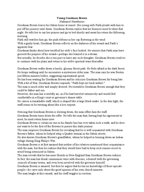 Now, let’s get to the heart of the matter: faith and doubt . Goodman Brown’s journey into the forest is, in many ways, a crisis of faith. He leaves his wife, Faith (again, the symbolism!), and his religious community to explore the unknown. What he finds there shakes his belief system to its core. The story highlights the struggle between holding onto one’s beliefs in the face of doubt and the temptation to succumb to skepticism and despair. Goodman Brown’s experience in the forest plants a seed of doubt in his mind that never goes away. He questions the piety of his community, the fidelity of his wife, and ultimately, the existence of true goodness in the world. This doubt poisons his life, leading to a bitter and isolated existence. Hawthorne suggests that blind faith can be dangerous, as it prevents individuals from critically examining their beliefs and confronting the complexities of life. However, he also cautions against succumbing entirely to doubt, as it can lead to cynicism and a loss of hope. The story ultimately presents a nuanced view of faith, suggesting that a healthy balance between belief and skepticism is essential for navigating the challenges of life. It’s like Hawthorne is asking, “Is it better to believe blindly, or to question everything?” Goodman Brown chooses the latter, and it doesn’t end well for him. But the story makes you wonder if there’s a middle ground, a way to have faith without being naive. Faith isn’t just about religion; it’s about trust, belief in others, and hope for the future. When Goodman Brown loses his faith, he loses all of that. So, yeah, this theme is super important for understanding the story’s message.