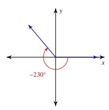 • Reference Angle = 45° (The reference angle is the original angle in the first quadrant)