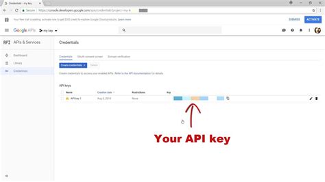 With the API enabled, you’re ready to create your API key. Go to “APIs & Services” in the Cloud Console menu again, but this time select “Credentials.” Click the “Create credentials” button at the top of the page and choose “API key.” A pop-up will appear displaying your shiny new API key. Copy this key and store it somewhere safe – you’ll need it later when you start making requests to the API. Be careful not to share your API key publicly, as anyone with access to it can use it to make requests on your behalf.