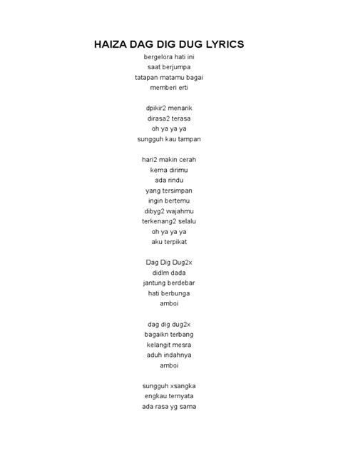 ‘Dag Dig Dug’ is one of Haiza’s signature songs, known for its catchy melody and relatable lyrics about the excitement and nervousness of new love. The lyrics perfectly capture the feeling of anticipation and the butterflies in your stomach when you’re around someone you like. The song’s upbeat tempo and playful lyrics make it a favorite among fans of all ages . Haiza’s energetic delivery and expressive vocals bring the lyrics to life, making the song even more infectious. The lyrics tell a story of someone who is completely smitten with another person, and the anticipation of seeing them again is almost unbearable. The lines describe the physical sensations of being in love, such as a racing heart and sweaty palms, which are universal experiences that many listeners can relate to. This relatability is one of the key reasons why ‘Dag Dig Dug’ has become such a popular and enduring hit. The song’s catchy chorus and memorable verses make it easy to sing along to, and the playful lyrics add to its overall charm. Whether you’re experiencing the thrill of new love or simply reminiscing about past romances, ‘Dag Dig Dug’ is a song that is sure to put a smile on your face and get your heart racing. So, get ready to dance and sing along to this timeless classic, and let Haiza’s infectious energy brighten your day. The song’s continued popularity is a testament to its universal appeal and Haiza’s ability to connect with her audience on a personal level. This track is a must-listen for anyone who wants to experience the joy and excitement of love through music.