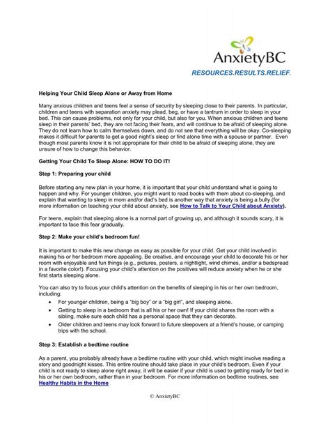 So, what do we do about these fears and anxieties? It’s all about empathy, reassurance, and creating a safe and supportive environment. First, validate their feelings . Don’t dismiss their fears as silly or trivial. Instead, acknowledge them and let them know that you understand how they feel. This can go a long way in building trust and making them feel safe. Create a bedtime routine . A predictable bedtime routine can work wonders. The routine should be consistent every night. It can include a warm bath, reading a book, or a quiet cuddle. This consistency helps them feel safe and relaxed, making it easier for them to transition to sleep. Make the room feel safe and welcoming . Check for monsters under the bed, use a nightlight, and create a cozy atmosphere in their room. You can also involve them in the decorating process to give them a sense of ownership and control. Offer reassurance and comfort . Before you leave the room, reassure them that you’ll be close by. If they wake up scared, go to them, offer a hug, and stay until they are calm and reassured. Gradual exposure to sleeping alone can be a useful strategy. Start with short periods of time, and gradually increase the amount of time they spend alone. It can be a slow process, but it is often effective. Teach them coping mechanisms . Help your child develop strategies for dealing with anxiety, like deep breathing exercises or visualizing a safe place. These skills can empower them to manage their fears and feel more in control. Remember, patience is key. It’s super important. It can take time for your child to feel comfortable sleeping alone, and there will likely be setbacks. But with consistent effort and a supportive approach, you can help them overcome their fears and develop healthy sleep habits. You’ve got this, guys!