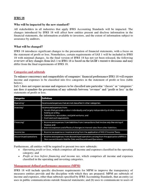 What in the world is IBDO IFRS 18 , you guys might be asking? Well, buckle up, because we’re about to dive deep into this new accounting standard that’s going to shake things up for many companies. IFRS 18 is a big deal, and understanding it is crucial if you’re involved in financial reporting, auditing, or even just investing. It’s all about making financial statements clearer and more comparable across different businesses. Think of it as a way to get a more consistent picture of a company’s performance, especially when it comes to how they report their profits and losses. This standard, officially known as Presentation and Disclosure in Financial Reporting , aims to address some long-standing issues with how companies present their income statements. You know, sometimes you look at two companies side-by-side, and their income statements look totally different, making it a headache to compare apples to apples. IFRS 18 is designed to put an end to that confusion by introducing more structured reporting requirements. We’re talking about new categories, new ways of disclosing information, and generally a much more uniform approach. So, whether you’re a seasoned finance pro or just dipping your toes into the world of accounting, this is something you’ll want to get a handle on. We’ll break down the key elements, explain why it’s important, and help you understand the potential impact it might have on your business or investments. Let’s get started!