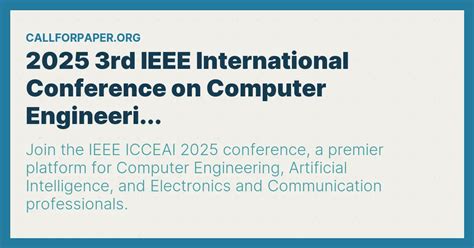 • Stay Ahead of the Curve: In the rapidly evolving fields of computer engineering and AI, staying informed about the latest advancements is crucial. ICCEAI 2025 provides a comprehensive overview of the current state-of-the-art and emerging trends.