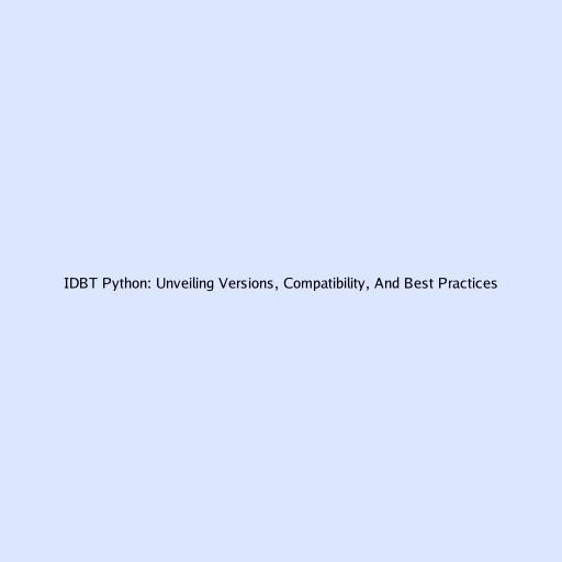IDBT Python: Unveiling Versions, Compatibility, And Best Practices