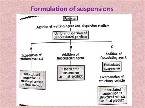 • Redispersibility: The ability of the suspension to redisperse the drug particles upon shaking is tested. This ensures that the drug is evenly distributed each time the suspension is used.