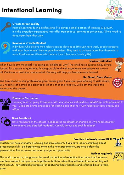 When you commit to intentional learning , you’re not just cramming for a test or trying to pick up a new hobby. You’re investing in your future, guys, and the long-term benefits are HUGE! Unlike the often superficial gains from incidental learning , intentional learning builds a solid foundation of knowledge and skills that pay dividends for years to come. One of the most significant advantages is enhanced problem-solving abilities . When you learn with intention, you’re not just memorizing facts; you’re developing critical thinking skills, learning how to analyze complex situations, and understanding how different pieces of information connect. This ability to dissect problems and devise solutions is invaluable in every aspect of life, from your career to your personal challenges. Think about it: if you intentionally learned project management principles, you’re better equipped to handle complex tasks than someone who just happened to overhear a few project meetings. Another massive benefit is increased adaptability and resilience . In today’s rapidly changing world, the ability to learn new things quickly and effectively is paramount. Intentional learning equips you with the strategies to learn, not just the information itself. This means you can pivot, acquire new skills, and adapt to new technologies or industries much more readily. If your job suddenly requires a new software, an intentional learner knows how to approach learning it efficiently, rather than hoping they’ll pick it up by osmosis. This proactive approach builds resilience in the face of uncertainty. Furthermore, intentional learning fosters greater confidence and self-efficacy . As you set goals, engage in deliberate practice, and achieve mastery, your belief in your own ability to learn and succeed grows exponentially. This self-confidence spills over into other areas of your life, encouraging you to take on new challenges and pursue ambitious goals. It’s the opposite of feeling overwhelmed by new information; it’s about feeling empowered. Career advancement is another major perk. Employers value individuals who demonstrate a commitment to continuous learning and professional development. Possessing a deep, well-understood skillset acquired through intentional learning makes you a more attractive candidate for promotions and new opportunities. You’re not just qualified; you’re demonstrably capable. Finally, personal enrichment cannot be overstated. Intentional learning opens doors to new passions, deeper understanding of the world, and a more fulfilling life. Whether it’s understanding great literature, mastering a musical instrument, or grasping complex scientific concepts, the journey of intentional learning is intrinsically rewarding. It broadens your horizons and enriches your perspective. While incidental learning might provide fleeting moments of discovery, intentional learning offers a sustained pathway to growth, competence, and fulfillment. It’s the difference between finding a souvenir and building a legacy of knowledge and skill. So, keep learning intentionally, guys – your future self will thank you!