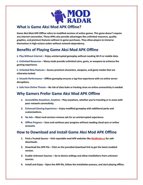Now, let’s talk about the “offline mod apk” part. This is where things get really interesting for many users, guys! An APK (Android Package Kit) is basically the file format used by Android to distribute and install mobile apps. When you download an app from the Google Play Store, you’re getting an official APK. However, a “modded apk” is an APK file that has been altered or modified from its original state. This modification can range from simple tweaks to significant overhauls. The “offline” aspect is the real game-changer here. Many apps, especially games, require a constant internet connection to function. This can be for various reasons: checking licenses, downloading updates, accessing online features, or even just to display ads. An offline mod apk , as the name suggests, is designed to work without an internet connection . This is a huge deal for several reasons. Firstly, it grants you unrestricted access to the app’s features, even when you have no Wi-Fi or mobile data. Think about being on a long flight, a remote location, or just trying to save on data charges – being able to play your favorite game or use a utility app offline is incredibly liberating. Secondly, offline mods often come with other benefits that are part of the “modding” process. This can include unlocked premium features , unlimited in-game currency (like coins or gems), removed advertisements , enhanced performance , or even access to content that would normally require a purchase. The goal is often to provide a more enjoyable and seamless user experience, free from the limitations and annoyances of the original, online-dependent version. It’s about empowering the user with full control over their app experience. However, it’s crucial to remember that downloading and installing modded APKs comes with its own set of considerations, which we’ll get into shortly. The allure lies in the promise of enhanced functionality and freedom from online dependencies.
