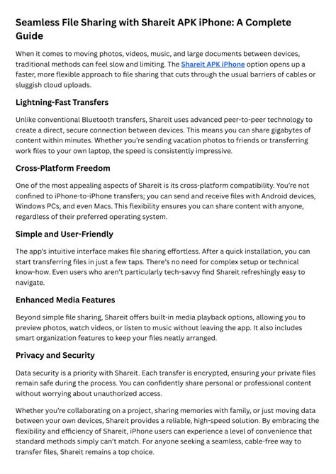 What really sets iTransfer Sesko apart from the crowd? It’s all about the features, guys! First off, let’s talk about speed . iTransfer Sesko is engineered for rapid data transfer. Whether you’re dealing with massive video files or just a bunch of small documents, it gets the job done in a fraction of the time compared to traditional methods. We’re talking about speeds that will make your head spin – in a good way, of course! Then there’s the simplicity . The interface is designed to be incredibly intuitive. No complex menus, no confusing jargon. You’ll be transferring files like a pro within minutes of downloading or accessing the service. It’s all about drag-and-drop functionality and clear, concise instructions. Another huge plus is its cross-platform compatibility . This is a game-changer, seriously. iTransfer Sesko isn’t limited to just one type of device or operating system. Whether you’re on Windows, macOS, iOS, or Android, it works seamlessly. Imagine sending a file from your iPhone to your Windows laptop without breaking a sweat. That’s the magic of iTransfer Sesko. Security is also paramount. In an age where data breaches are all too common, you can rest assured that iTransfer Sesko takes your privacy seriously. It often employs robust encryption methods to ensure your files are protected during transit and at rest. This gives you peace of mind, knowing your sensitive information is safe. And let’s not forget about file size limits . Many free services have stingy limits, but iTransfer Sesko often allows for the transfer of much larger files, making it ideal for professionals dealing with high-resolution media or large datasets. Finally, consider the accessibility . Whether it’s a web-based service or a downloadable application, iTransfer Sesko is designed to be easily accessible, meaning you can transfer files whenever and wherever you need to. These features combine to create a powerful yet user-friendly tool that truly stands out in the file-sharing landscape.
