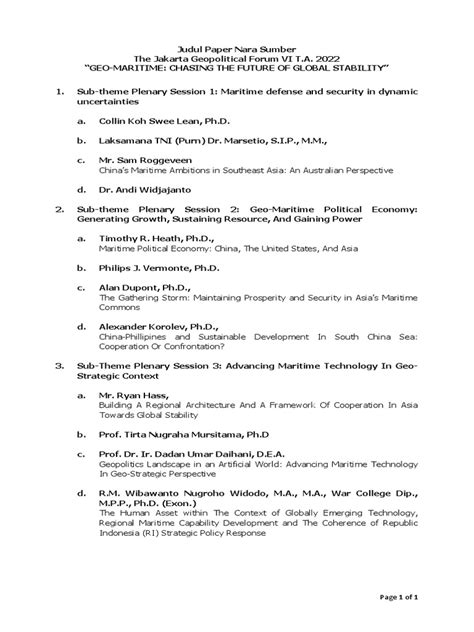 The forum featured prominent diplomats, academics, policymakers, and business leaders. These individuals have a wealth of experience in international relations, security, and development. Their insights and analysis helped to shape the discussions and provide valuable perspectives on the challenges and opportunities facing the global community. One of the key strengths of the forum was its inclusivity. Participants came from a wide range of countries and regions, representing diverse viewpoints and interests. This diversity ensured that the discussions were not dominated by any single perspective and that a variety of voices were heard. The inclusion of representatives from civil society organizations and non-governmental organizations (NGOs) also added value to the forum. These groups play a critical role in addressing global challenges and their perspectives are essential for developing effective solutions. Many speakers emphasized the need for a more inclusive and participatory approach to global governance. They argued that decisions should not be made solely by governments but should also involve input from civil society, the private sector, and other stakeholders. This call for greater inclusivity reflects a growing recognition that global challenges require collective action and that everyone has a role to play. For example, Dr. Anya Sharma, a leading expert on climate change and security, presented compelling evidence of the links between climate change and conflict. Her presentation highlighted the urgent need for action to mitigate climate change and adapt to its effects. Ambassador Kenji Tanaka, a seasoned diplomat with extensive experience in Asia, shared his insights on the evolving geopolitical landscape in the region. His analysis focused on the challenges and opportunities facing ASEAN and the importance of regional cooperation. Ms. Fatima Ali, a representative from a leading human rights organization, spoke about the importance of protecting human rights in the context of global challenges. Her presentation emphasized the need for accountability and justice for victims of human rights abuses. Basically, the Jakarta Geopolitical Forum 2022 served as a platform for these influential figures to share their knowledge, insights, and recommendations, contributing to a more informed and nuanced understanding of the complex geopolitical landscape. The interaction and exchange of ideas among these participants fostered new collaborations and partnerships, further enhancing the impact of the forum.