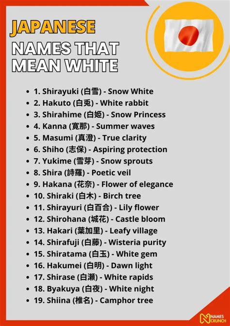 So there you have it, everyone! We’ve journeyed through the serene and symbolic world of Japanese names meaning white. From the direct elegance of Shiro to the snowy beauty of Yukiko , and the radiant clarity of Hikari , we’ve seen how this simple color carries profound meaning in Japanese culture. Whether you were drawn to the purity of snow, the brightness of light, or the divine connotations of sacredness, there’s a beautiful name out there waiting to be discovered. Remember, choosing a name is a deeply personal and significant act. It’s about finding a sound, a meaning, and a story that resonates with you and your hopes for your child. The names we’ve explored offer a blend of aesthetic beauty and rich cultural symbolism, all stemming from the evocative power of white. We hope this guide has given you plenty of inspiration and insight into finding that perfect Japanese name. It’s been a blast exploring this with you all, and we wish you the best in your naming journey! Keep shining bright, just like the meanings these beautiful names carry.