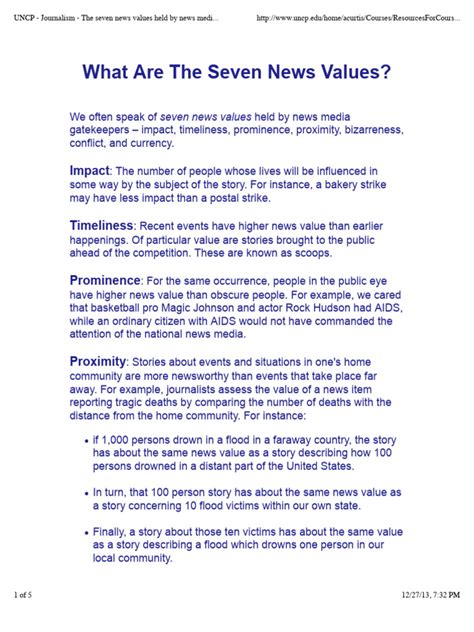It’s crucial to understand, guys, that these 12 news values don’t operate in isolation. They often overlap and interact, and a single story can possess multiple values, significantly boosting its newsworthiness. For example, a story about a natural disaster hitting a prominent city ( proximity to a large population, prominence of the location) that causes widespread damage ( impact , consequence ) and involves acts of heroism ( human interest ) would be considered extremely newsworthy. Similarly, a political scandal involving a well-known figure ( prominence ) often involves conflict ( conflict ) and has significant implications for the public ( impact , consequence ), making it a prime candidate for extensive media coverage. Journalists and editors constantly weigh these values when deciding which stories to pursue and how much attention to give them. It’s a complex balancing act. Sometimes, a story might lack one value but be so strong in another that it still makes the cut. A bizarre, one-off event ( novelty ) might not have a huge impact or consequence, but its sheer strangeness could guarantee it a spot on the news. Conversely, a story with enormous impact might be played down if it’s not timely or if it involves less prominent individuals, unless it has a strong human interest angle. The application of these values can also be influenced by the target audience and the specific media outlet. A tabloid newspaper might prioritize sex and sensationalism ( sex , deviance , human interest ), while a serious broadsheet might focus more on impact, consequence, and conflict in a political or economic context. Understanding these 12 news values empowers you, the reader, to critically analyze the news you consume. You can start to ask yourselves: Why is this story being covered? What values does it tap into? Is the emphasis on certain values shaping the narrative in a particular way? By recognizing these underlying principles, you can gain a deeper appreciation for the media’s role in shaping public discourse and make more informed judgments about the information presented to you. It’s about moving beyond passive consumption to active engagement, understanding the intricate process that transforms events into the news stories that fill our screens and newspapers, and recognizing how these values influence not just what we see, but how we perceive the world around us. It’s a powerful tool for media literacy in today’s information-saturated age, helping us navigate the complexities of the modern media landscape with greater awareness and critical thinking. The ongoing interplay of these values ensures that the news remains a dynamic and often unpredictable reflection of our society’s interests and concerns.