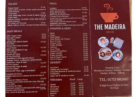 Now for the best part, am I right? Let’s talk about dessert! The Madera Cafe menu features a tempting array of sweet treats that are sure to satisfy your sweet tooth. From decadent cakes to creamy ice cream, there’s something for every dessert lover. Let’s start with the cakes, shall we? Madera Cafe offers a variety of cakes, from classic chocolate cake to fruity cheesecakes. The chocolate cake is a rich and decadent treat that’s perfect for chocolate lovers. The cheesecake is a creamy and tangy delight that’s sure to please. And for those who are looking for something a little lighter, there’s the carrot cake, which is moist and flavorful. But the cakes aren’t the only stars of the dessert show. Madera Cafe also offers a selection of ice cream flavors, from classic vanilla to exotic mango. The vanilla ice cream is a simple and satisfying treat that’s perfect on its own or as a topping for other desserts. The mango ice cream is a tropical delight that’s bursting with flavor. And for those who are feeling adventurous, there’s the chocolate chip cookie dough ice cream, which is loaded with chunks of cookie dough. In addition to cakes and ice cream, Madera Cafe also offers a selection of pastries, such as croissants, muffins, and scones. The croissants are flaky and buttery, the muffins are moist and flavorful, and the scones are crumbly and delicious. And if you’re looking for something a little more indulgent, you can always order a slice of pie, such as apple pie or pumpkin pie. So whether you’re in the mood for a cake, ice cream, or pastry, Madera Cafe has you covered. Treat yourself to a sweet treat at Madera Cafe and indulge in a dessert that’s both delicious and satisfying!
