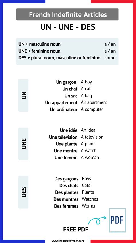 The indefinite article des can sometimes be tricky for English speakers. While it translates to “some,” it’s often omitted in English when referring to generalities. For example, “I have books” in English would be “ J’ai des livres ” in French. However, the “ des ” is crucial in French. When negating a sentence with an indefinite article, des and un/une change to de (or d’ ) before the noun. For example, “ J’ai des livres ” (I have books) becomes “ Je n’ai pas de livres ” (I don’t have any books). Mastering this rule is essential for avoiding common grammatical errors. Pay close attention to how indefinite articles are used in different contexts and practice using them in your own sentences. Remember, consistent practice is key to mastering the nuances of French grammar.