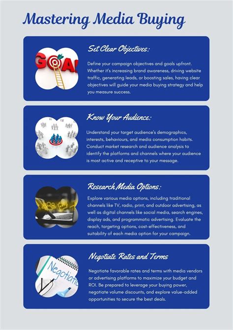 How much are you willing to spend on your media buying campaigns? Allocate your budget strategically across different channels based on their potential ROI. Don’t put all your eggs in one basket. Diversify your budget across multiple channels to mitigate risk and maximize your reach. It’s also important to set aside a portion of your budget for testing and optimization. This will allow you to experiment with different ad formats, targeting options, and bidding strategies to identify what works best for your audience. Regularly review your budget and make adjustments as needed based on your campaign performance.