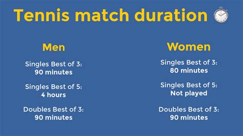 - Set Format: As mentioned earlier, the set format is a major player in determining match length. An 8-game pro set is quicker than a standard set. Also, if a set goes to a tiebreaker, this will take some extra minutes. The frequency of tiebreakers or extended sets can add significant time to a match.