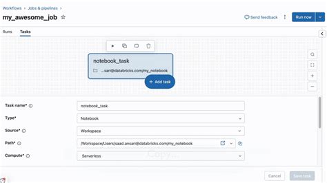 - Task Definition: Within your asset bundle, define tasks that install the Python wheels and run your notebooks or other jobs. Specify dependencies, resources, and configurations as needed.