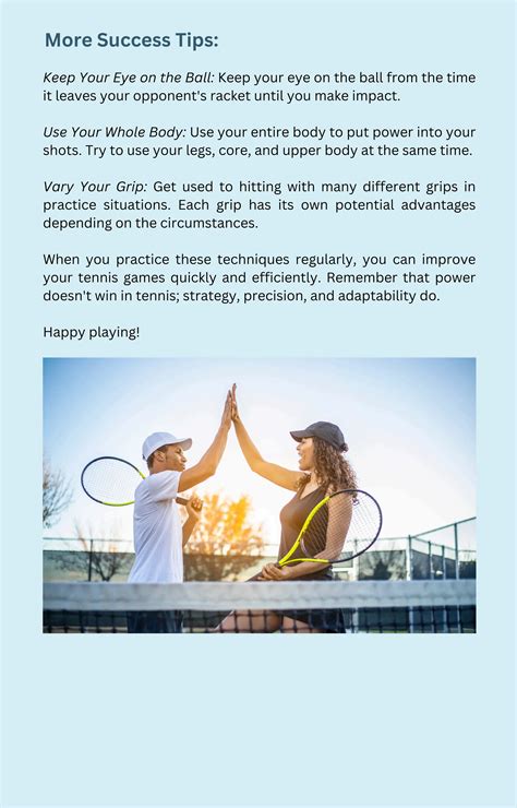 Alright, let’s wrap things up with some tips for improving your game . These are some things you can do to enhance your tennis skills and become a better player. Get a coach. A good coach can help you improve your technique, strategy, and mental game. Coaches can provide personalized feedback and training programs that are designed to help you reach your full potential. Practice regularly. Consistent practice is the key to improvement. Set a schedule and stick to it. The more you practice, the better you’ll become. Watch professional tennis matches. Watching professionals play can help you learn new techniques, strategies, and mental approaches. Observe their footwork, shot selection, and mental toughness. Analyze your own game. Video-record your matches. This will help you identify your strengths and weaknesses. Focus on those areas where you need to improve. Celebrate your successes. Acknowledge your accomplishments and celebrate your wins. This will keep you motivated and give you confidence. Tennis is a challenging sport, but it’s also incredibly rewarding. Keep these tips in mind as you work to develop your game, and you’ll be well on your way to success.