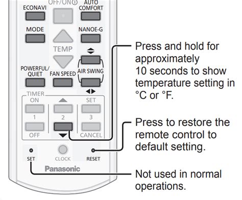 2. Resetting the Remote : Although less common for this specific function, sometimes resetting the remote can help. To reset, you may need to remove the batteries from the remote for a few minutes, then reinsert them. This might reset the settings to their default values, including the temperature unit. However, be aware that this could also reset other settings.