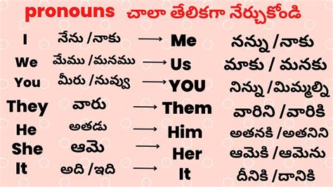 Hey guys! Ever wondered how to talk about yourself or others in Telugu without constantly repeating names? Well, you’re in the right place! Today, we’re diving into the world of Telugu pronouns . Pronouns are those handy little words that replace nouns, making our sentences smoother and less repetitive. Think of them as the superheroes of language, swooping in to save us from sounding like a broken record. So, buckle up, and let’s get started on this pronoun adventure!