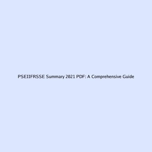 PSEIIFRSSE Summary 2021 PDF: A Comprehensive Guide