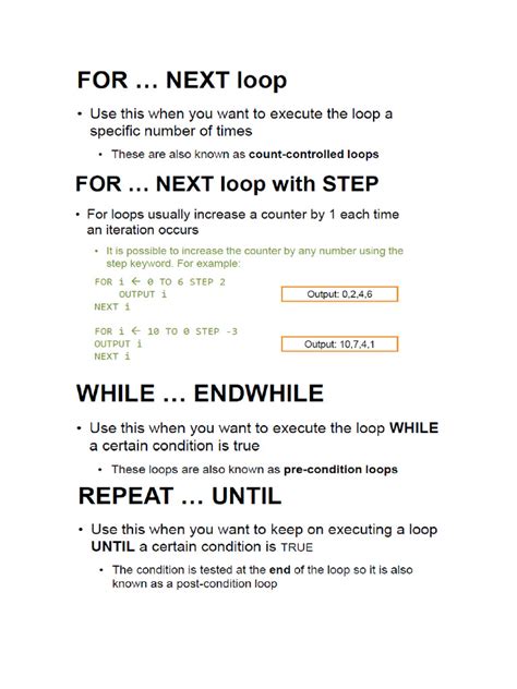 Alright, let’s get down to the nitty-gritty! In pseudocode, we typically encounter a few main types of loops, each suited for different scenarios. The most common ones are the FOR loop, the WHILE loop, and the DO-WHILE loop (sometimes called REPEAT-UNTIL ). Understanding when to use each one is key to writing effective pseudocode and, subsequently, efficient code. Don’t sweat it if it sounds a bit technical; we’ll break it down nice and simple.