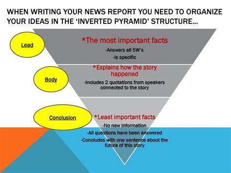 So, you’re ready to write your own pyramid news articles ? Awesome! Here are some tips to help you nail it. First, start with a strong lead . Your lead paragraph is the most important part of the article, so make it count. Clearly and concisely state the five Ws and one H: who, what, when, where, why, and how. Grab the reader’s attention and make them want to keep reading. A strong lead is crucial for engaging readers and conveying the main points of the story. Second, prioritize information . Arrange the supporting details in descending order of importance. Put the most crucial information first and save the less important details for later. This ensures that readers get the most important facts even if they only read the first few paragraphs. Prioritizing information enhances clarity and efficiency. Third, use clear and concise language . Avoid jargon, clichés, and overly complex sentences. Write in a style that is easy to understand and engaging for a wide audience. Clarity and conciseness are essential for effective communication. Fourth, include quotes from credible sources . Quotes add credibility and depth to your article. Choose quotes that are relevant, informative, and engaging. Attribute quotes accurately and provide context to ensure that readers understand the source’s perspective. Credible sources enhance the trustworthiness of your article. Fifth, keep it short and sweet . Aim for brevity and avoid unnecessary details. Remember, readers are busy and have limited attention spans. Get to the point quickly and efficiently. Brevity enhances readability and engagement. Sixth, edit and revise your work . Before publishing your article, take the time to edit and revise it carefully. Check for errors in grammar, spelling, and punctuation. Ensure that the article is clear, concise, and well-organized. Thorough editing and revision enhance the quality and credibility of your work. By following these tips, you can write effective pyramid news articles that are clear, concise, and engaging. The pyramid structure is a valuable tool for communicating news effectively, and with practice, you can master this technique and become a skilled journalist. Remember to always prioritize information, use clear language, and strive for accuracy and objectivity. These principles are essential for producing high-quality news articles that inform and engage your audience.