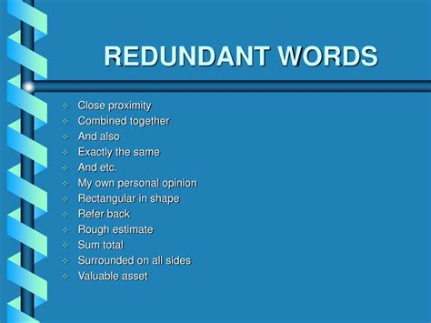 Let’s get concrete with some redundant examples, specifically in language, because this is where it often pops up! We’ve all seen sentences like, “ The meeting is scheduled for Tuesday next week. ” Notice how “Tuesday” and “next week” already imply each other? You could just say, “The meeting is scheduled for Tuesday,” or “The meeting is scheduled for next week,” and it would be perfectly clear. The phrase “Tuesday next week” is redundant because it uses more words than necessary to convey the same meaning. Another classic is, “ He returned back to his hometown. ” The word “returned” already means to go back. So, “returned back” is a double dose of