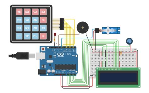- Add Electronic Components: Drag and drop the Arduino, keypad, servo motor, and other components into the workspace.