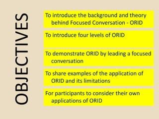 So, what’s the deal with Ilmsonnocenter ORID? At its core, it’s a framework, a structured way of thinking about and facilitating learning experiences. Think of it as a roadmap for how people learn best, especially in group settings or when tackling complex ideas. The ‘ORID’ part stands for Objective, Reflective, Interpretive, and Decisional . Each of these stages is designed to guide a group or an individual through a process of inquiry and understanding, moving from concrete facts to deeper meaning and finally to action. This isn’t just some abstract theory; it’s a practical tool used in workshops, training sessions, brainstorming meetings, and even personal development to ensure that discussions are productive, insights are meaningful, and outcomes are actionable.