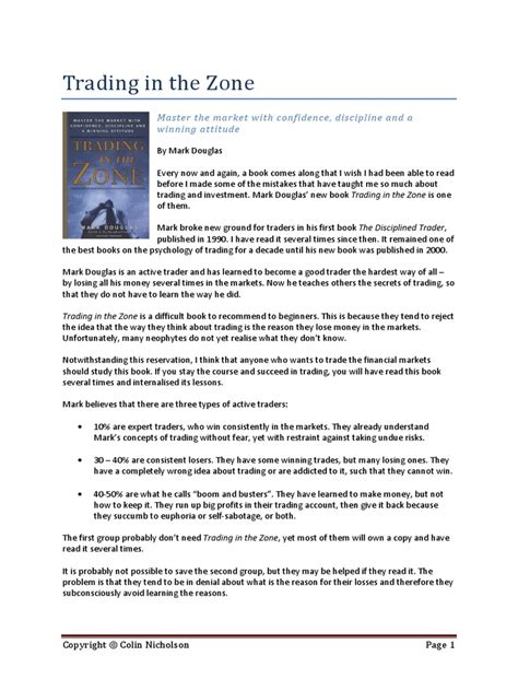 Hey guys! Are you looking to improve your trading psychology and achieve consistent profitability? Well, you’ve probably heard of Mark Douglas’s Trading in the Zone . This book is a game-changer for many traders, and in this article, we’ll dive into the key concepts and explore why having a PDF version can be super helpful. Let’s get started!