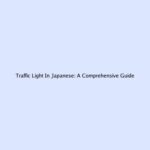 Traffic Light in Japanese: A Comprehensive Guide
