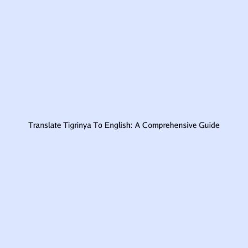 Translate Tigrinya To English: A Comprehensive Guide