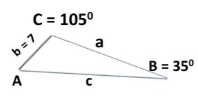 Let’s say we know the length of side ‘a’, which is opposite angle A. Now we have angle C (105 degrees) and side ‘a’. We still need more information to uniquely solve the triangle, so let’s assume we also somehow know angle A (or are able to deduce it through other relationships). Since we know that Angle A + Angle B = 75 degrees, if we know Angle A, we can easily find Angle B. Once we have all three angles, we can use the Law of Sines to find the lengths of the other two sides.